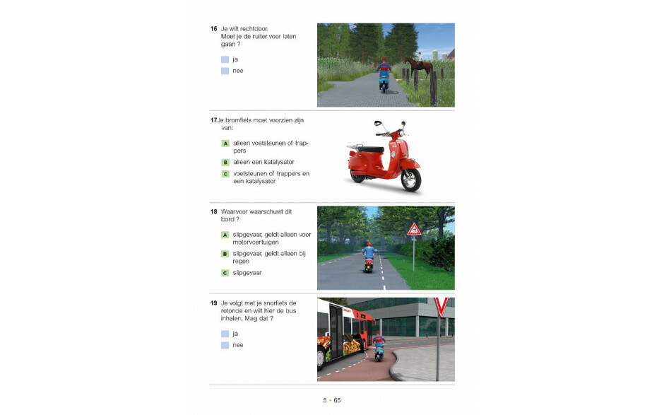 Hierdoor krijg je een realistisch beeld van de manier van examineren bij het CBR. Elke examentraining is een ideale mix van ja/nee-, abc- en invulvragen.